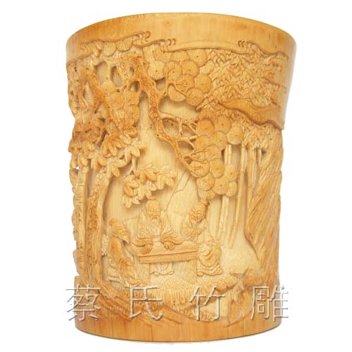蔡氏竹雕竹雕,是中华民族文化艺术宝库中璀璨的名珠,千百年来悠久的历史进程,给后人留下了精湛绝伦的艺术精品,也造就了历代众多的竹雕匠师. 蔡氏竹雕系列工艺品是江西靖安雕刻精品厂设计并生产的手工艺品,作品荣获中国竹文化节暨国际竹业博览会第二、三、四届金奖等全国大奖二十余项和多项国家专利,先后销往欧美和东南亚十几个国家和地区,并被当作国宾礼品馈赠给外国元首和国际友人,1999年本厂成功为昆明世博园设计制作大型竹吊灯,获得了国内外人士的普遍赞誉.中央电视台、江西卫视、南昌电视台、湖南卫视、宜春电视台、江西日报、中国书画报等媒体对蔡氏竹雕作过多次专题报道和推介,是江西著名的一种特色文化艺术品.蔡氏竹雕的发展得到了各级领导的关怀与帮助,2007年全国两会期间江西省委孟书记在中央电视台“小崔会客”栏目中推介蔡氏竹雕产品,对蔡氏竹雕高度赞誉。蔡氏竹雕创始人蔡煜远现为中国民间文艺家协会会员、江西省工艺美术学会会员。 特色产品镂空雕笔筒,分单层、双层和三层,采用独特的镂空技法法,经十七道工序手工刻制而成.作品创意来源于古代建筑艺术,造型取法古代亭台楼阁之门窗、回廊、护拦等,图案衍化于中国古代吉祥图案、几何图案、秀织图案等,寓意吉祥,充分体现空灵、精巧、精微、玲珑剔透之艺术特独色.极具观赏装饰和收藏价值. 竹根雕作品风格各异,因材取势,随势象形,各具情态,刀法精练、线条流畅,作品注重天人合一,形神兼备。大件的作品古色古香极具装饰趣味;小件则既可装饰又可把玩,是常置案头的文房雅玩,经手把玩久之则似得人之灵气,愈加润泽,质感温和,更具神采。深受国内外宾客和艺术品收藏者的喜爱. 留青雕作品主要是竹刻插屏,此插屏由中国传统文房用品臂搁演化而来,精美的留青作品从木架上取下即为臂搁。臂搁为作书绘画时枕臂之用,也可镇纸。是书案重要饰物,富书卷气。常置案头,日夕磨挲,历时愈久,愈摸愈润,竹肌将由浅黄色自然泛红,精美的嫩黄色竹皮图纹与泛红的竹肌色差将更为鲜明,越衬托出精雕细琢的夺目可爱。 蔡氏竹雕系列工艺品还有:微雕、竹灯、竹挂屏和各大小壁挂;竹简有各种古今名文如《滕王阁序》、《增广贤文》、《兰亭序》、《孙子兵法》、《三十六计》等;竹根雕有历史人物、吉祥物、仿古器皿、文房雅玩和各种艺术摆件。.......