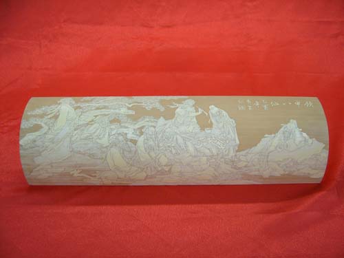 竹雕,是中华民族文化艺术宝库中璀璨的名珠,千百年来悠久的历史进程,给后人留下了精湛绝伦的艺术精品,也造就了历代众多的竹雕匠师. 蔡氏竹雕系列工艺品是江西靖安雕刻精品厂设计并生产的手工艺品,作品荣获中国竹文化节暨国际竹业博览会第二、三、四届金奖等全国大奖二十余项和多项国家专利,先后销往欧美和东南亚十几个国家和地区,并被当作国宾礼品馈赠给外国元首和国际友人,1999年本厂成功为昆明世博园设计制作大型竹吊灯,获得了国内外人士的普遍赞誉.中央电视台、江西卫视、南昌电视台、湖南卫视、宜春电视台、江西日报、中国书画报等媒体对蔡氏竹雕作过多次专题报道和推介,是江西著名的一种特色文化艺术品.蔡氏竹雕的发展得到了各级领导的关怀与帮助,2007年全国两会期间江西省委孟书记在中央电视台“小崔会客”栏目中推介蔡氏竹雕产品,对蔡氏竹雕高度赞誉。蔡氏竹雕创始人蔡煜远现为中国民间文艺家协会会员、江西省工艺美术学会会员。 特色产品镂空雕笔筒,分单层、双层和三层,采用独特的镂空技法法,经十七道工序手工刻制而成.作品创意来源于古代建筑艺术,造型取法古代亭台楼阁之门窗、回廊、护拦等,图案衍化于中国古代吉祥图案、几何图案、秀织图案等,寓意吉祥,充分体现空灵、精巧、精微、玲珑剔透之艺术特独色.极具观赏装饰和收藏价值. 竹根雕作品风格各异,因材取势,随势象形,各具情态,刀法精练、线条流畅,作品注重天人合一,形神兼备。大件的作品古色古香极具装饰趣味;小件则既可装饰又可把玩,是常置案头的文房雅玩,经手把玩久之则似得人之灵气,愈加润泽,质感温和,更具神采。深受国内外宾客和艺术品收藏者的喜爱. 留青雕作品主要是竹刻插屏,此插屏由中国传统文房用品臂搁演化而来,精美的留青作品从木架上取下即为臂搁。臂搁为作书绘画时枕臂之用,也可镇纸。是书案重要饰物,富书卷气。常置案头,日夕磨挲,历时愈久,愈摸愈润,竹肌将由浅黄色自然泛红,精美的嫩黄色竹皮图纹与泛红的竹肌色差将更为鲜明,越衬托出精雕细琢的夺目可爱。 蔡氏竹雕系列工艺品还有:微雕、竹灯、竹挂屏和各大小壁挂;竹简有各种古今名文如《滕王阁序》、《增广贤文》、《兰亭序》、《孙子兵法》、《三十六计》等;竹根雕有历史人物、吉祥物、仿古器皿、文房雅玩和各种艺术摆件。.......
